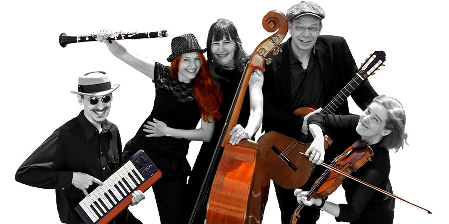 Heimat, das ist eine wild tanzende Geige, ein lässig groovendes Piano, eine sanft suchende Klarinette. Und Heimat ist bei Mischpoke vor allem die spannungsgeladene Performance fünf starker Künstlerpersönlichkeiten. Sängerin und Klarinettistin Magdalena Abrams, Kontrabassistin Maria Rothfuchs, Gitarrist Frank Naruga, Violinistin Cornelia Gottesleben und Jazzpianist Christoph Spangenberg bereichern sich aufs Schönste gegenseitig, bis dieser ganz spezielle Mischpoke-Sound entsteht: Eine kollektive Energie, die Herz und Hüfte in Schwingung versetzt. Wie sie einander zuhören, sich intuitiv ergänzen oder bewusst Brüche herstellen – all das ist ein äußerst anregendes Erlebnis.