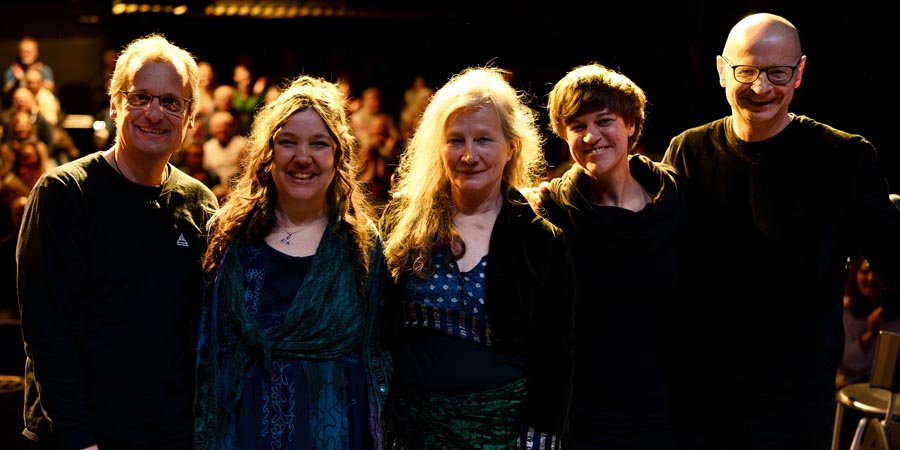 Andrea Bender (Gesang), Ralph Stahlschmidt (Gitarre & Gesang) und Michaela Meurer (Gesang) erweitern das Ensemble und bereichern den Abend punktuell mit ihrer Stimme und Spielfreude.